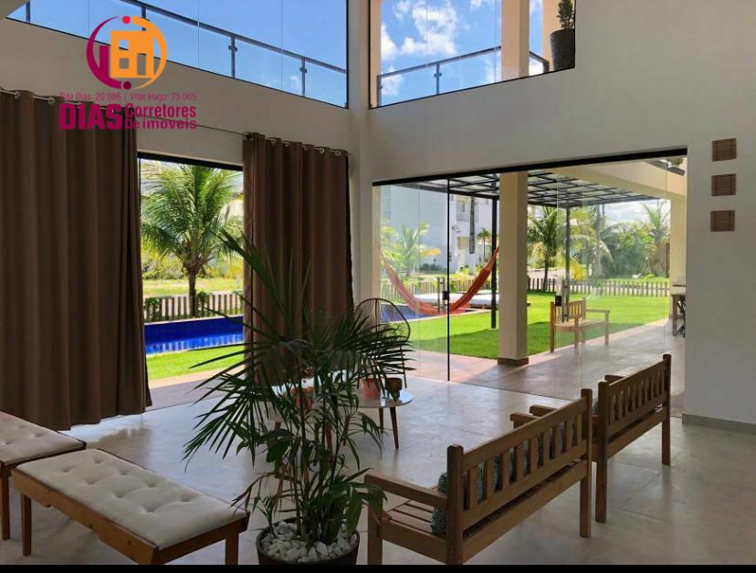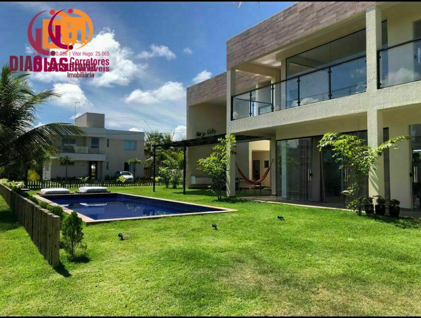 Linda casa dúplex recém Construída à venda, com 732m² de área , nascente, com 5 suítes completas com armários e ar condicionados, sendo 01 térrea, e 04 no pavimento superior, completamente projetada por Arquiteto renomado com modernidade, requinte e bom gosto, todos revestimentos, bancadas, espaço gourmet com churrasqueira, área de lazer gramada, piscina com prainha, sala para 4 ambientes completamente integrados e funcionais, cozinha ampla com bancadas e armários novos, área de serviço, dependência de empregada completa, tudo isso dentro de um belo condomínio banhado por lagoa, próximo ao mar, com infraestrutura, clube com piscinas, quadras poliesportivas, parque temático, pista de cooper beirando toda lagoa e condomínio, próximo aos melhores restaurantes e praias de Guarajuba. Chaves em mãos para facilitar a realização do seu sonho!