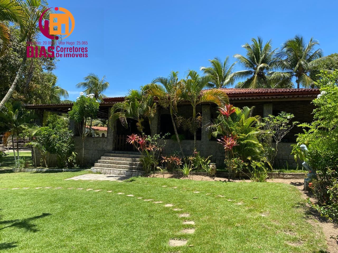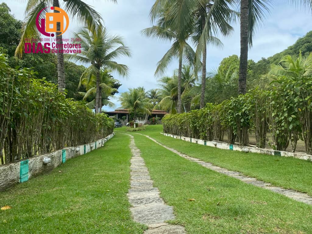 Sítio à venda com 10.000m² de área total, muita área verde com pomar, jardim, casa sede com área construída de 600m², toda avarandada com revestimento em pedras naturais redes e muita área de lazer, sala para 3 ambientes, sendo estar, home theater e jantar completo, piso em porcelanato, com 5/4, sendo 3 suítes completas, 2 quartos sociais, cozinha completa com dispensa, copa, dependência de empregada completa, clube privativo com piscina novo com deck, espaço gourmet com churrasqueira e espaço de refeições mobiliado, campo de futebol, pomar com várias arvores frutíferas, muito cuidado com gramado extenso, completamente murado e seguro, com segurança local, fica em frente ao rio Joanes, bem próximo á praia de Jacuípe, casa do caseiro, super bem localizado. Pronto para morar, como também construir um excelente condomínio ou fazer hotel e outros. Ligue e realize seu sonho já.
